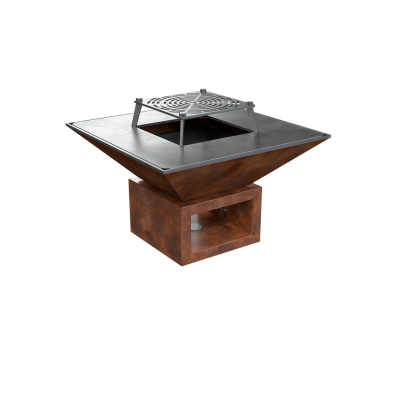 Recevez avec style autour de ce grill d'exception. Plaque XXL 91x91 cm multi-zones + grille centrale pour varier les cuissons. Rehausseur wok/marmite inclus. Bois ou charbon : saveurs authentiques garanties. Acier Corten ultra-résistant + noyau céramique pour une chaleur homogène et durable. Meuble de rangement intégré, cendrier et bac à graisse amovibles. Entretien express. Couvercle de protection inclus. Transformez vos repas en expérience inoubliable.